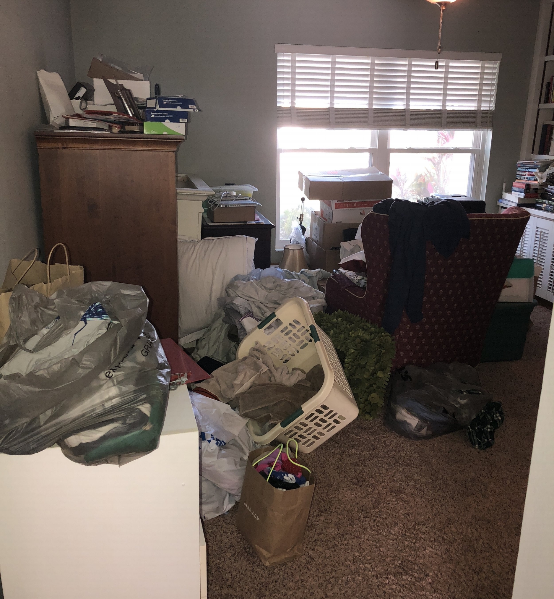 2. Gather all loose photos and sentimental papers from around the office. Purchase stackable bins to organize. Label clearly.